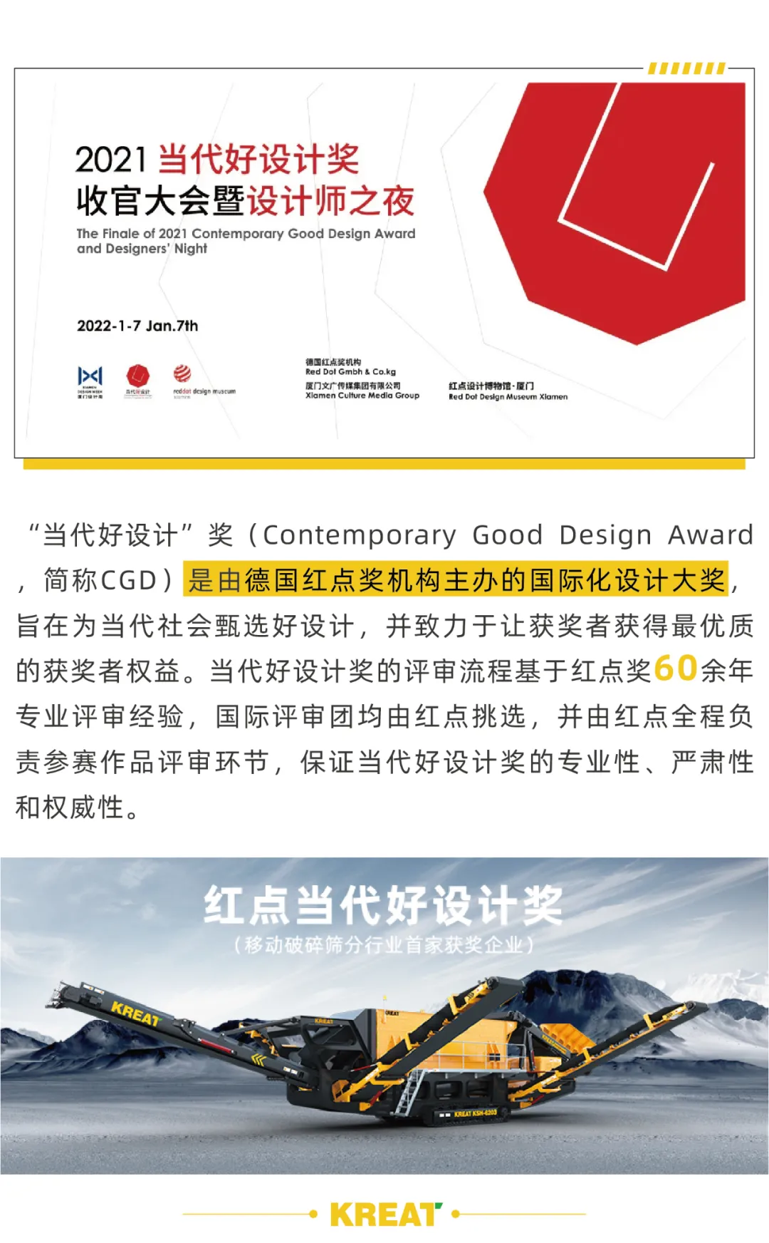 【凱瑞特】履帶移動式水平篩分站KSH-6203榮獲2021紅點當代好設計獎