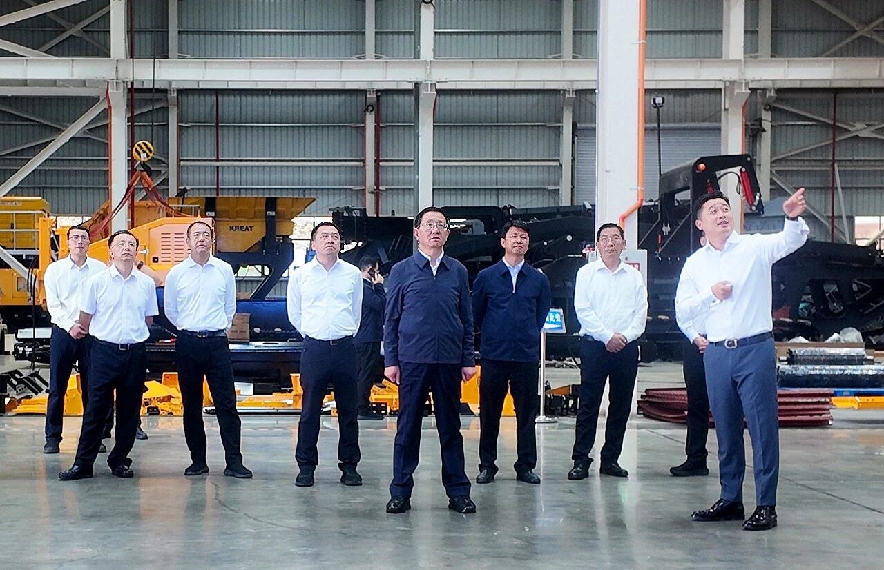 在凱瑞特重工破碎篩分裝備制造園調研期間,王予波省長現場聽取了昆明市、滇中新區和嵩明縣楊林經開區的工作匯報。凱瑞特董事長孫榮耀介紹了企業的發展歷程、經營情況、海內外市場銷售情況及未來發展規劃,并陪同王予波省長一行參觀了生產車間。