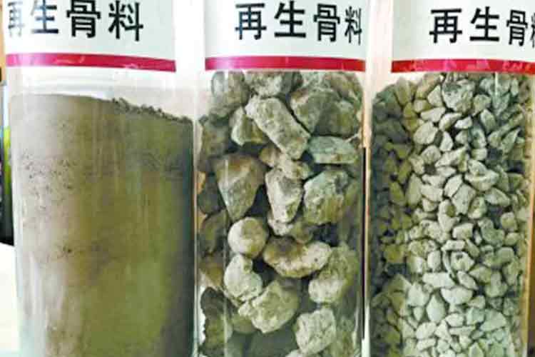 答:廢混凝土等固廢資源經破碎、加工、篩分等工序后后,所得粒徑為5~40 mm的骨料為再生粗骨料,粒徑0.5~5mm的骨料為再生細骨料。