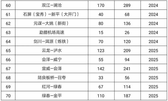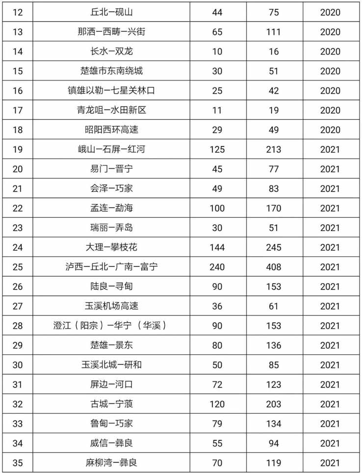 (一)加密滇中全面成網。推進滇中城市群高速公路全面成網,實施新平—戛灑、易門—晉寧、陸良—尋甸等32個高速公路項目,里程2154公里,投資3661億元,實現滇中城市群每個縣(市、區)具備3個以上高速公路出入口,形成快速、便捷的區域高速公路網,推動人流物流高效順暢,充分發揮滇中城市群引擎輻射帶動作用。