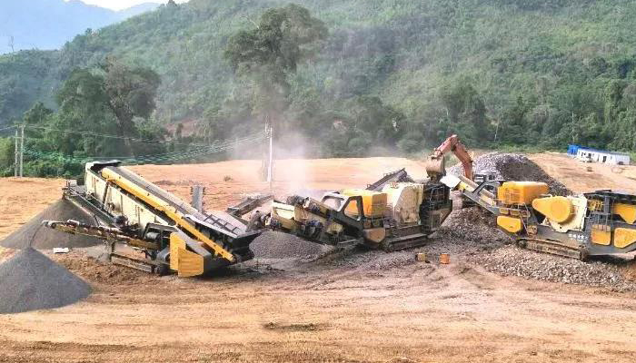 花崗巖破碎:移動顎式破碎站+移動反擊式破碎站