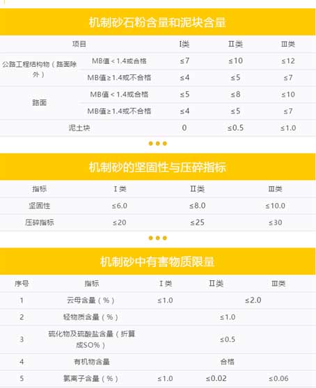 3.機制砂中如發現含有顆粒狀的硫化物或硫酸鹽雜質時,應進行專門檢驗,確定能滿足混凝土耐久性要求時方能使用。