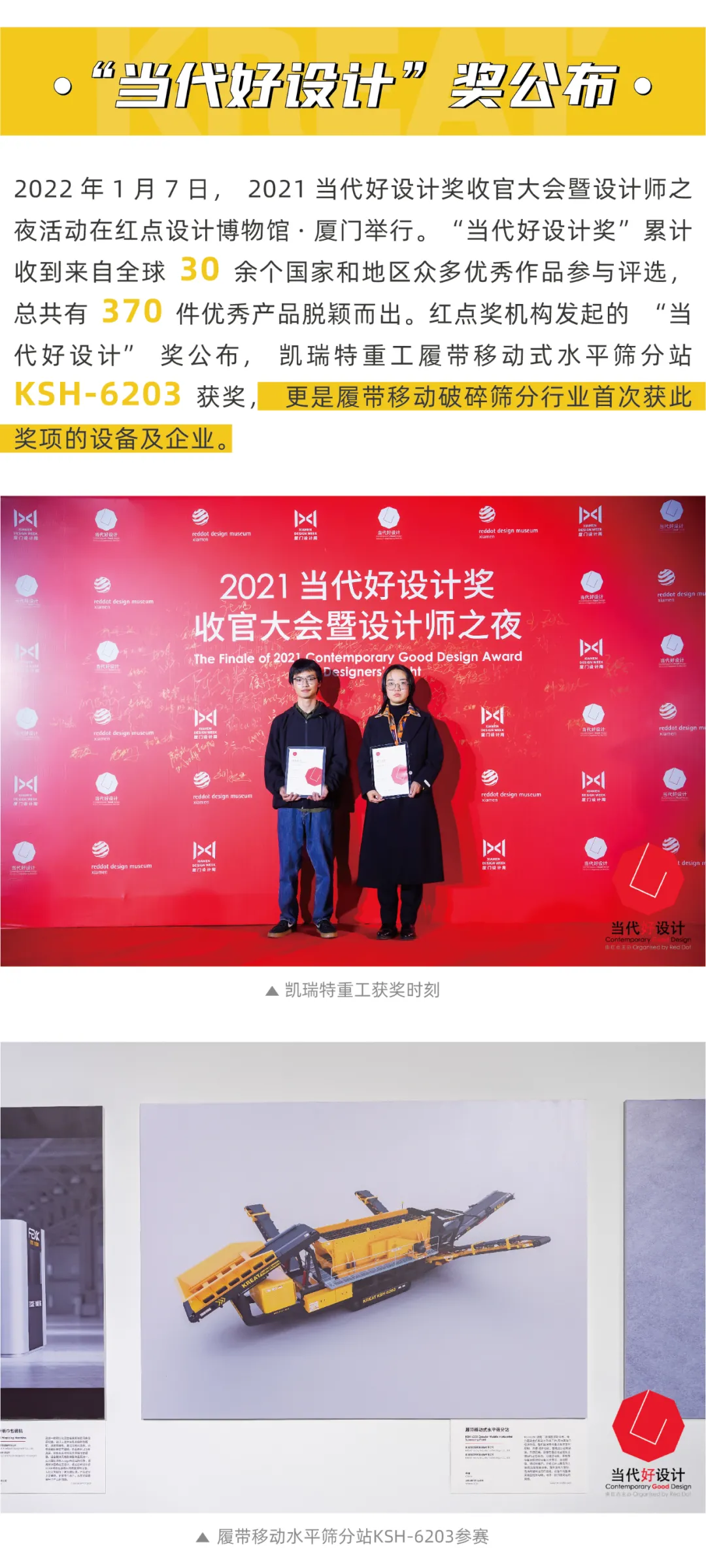 【凱瑞特】履帶移動式水平篩分站KSH-6203榮獲2021紅點當代好設計獎