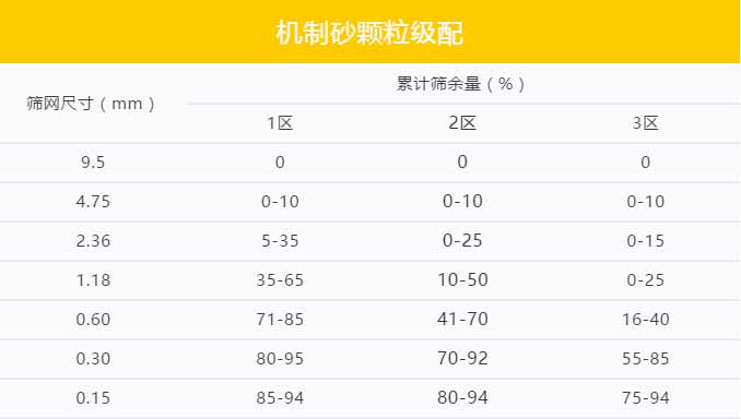 答:機制砂的顆粒級配是指顆粒各粒徑的搭配比例。