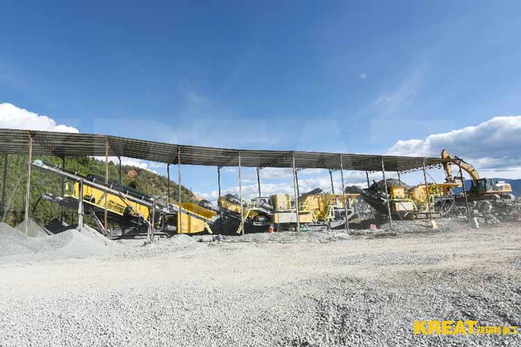 移動鄂式破碎站(zhan)(zhan)+移動反擊式破碎站(zhan)(zhan)+移動篩分站(zhan)(zhan)
